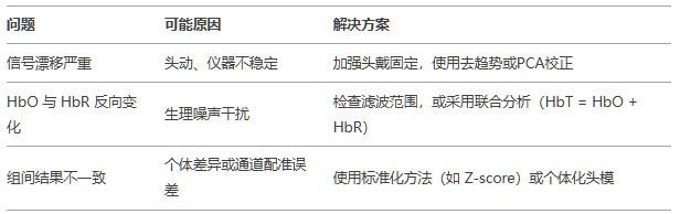 fNIRS數據處理需結合信號特征和研究目標選擇合適的方法。預處理階段應重點關注運動偽跡和噪聲抑制,分析階段可靈活采用 GLM、功能連接或機器學習方法。