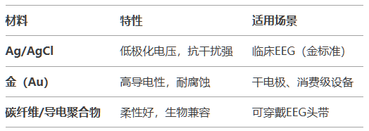 EEG技術通過頭皮表面電極記錄大腦神經元集群的電活動,其信號幅度通常在微伏(μV)級別,易受環境噪聲和電極-皮膚接觸阻抗的影響。電極的選型與設計需綜合考慮信號保真度、佩戴舒適性、長期穩定性和成本等因素。本文從技術特性出發,探討不同電極的適用場景,并給出選型指導。