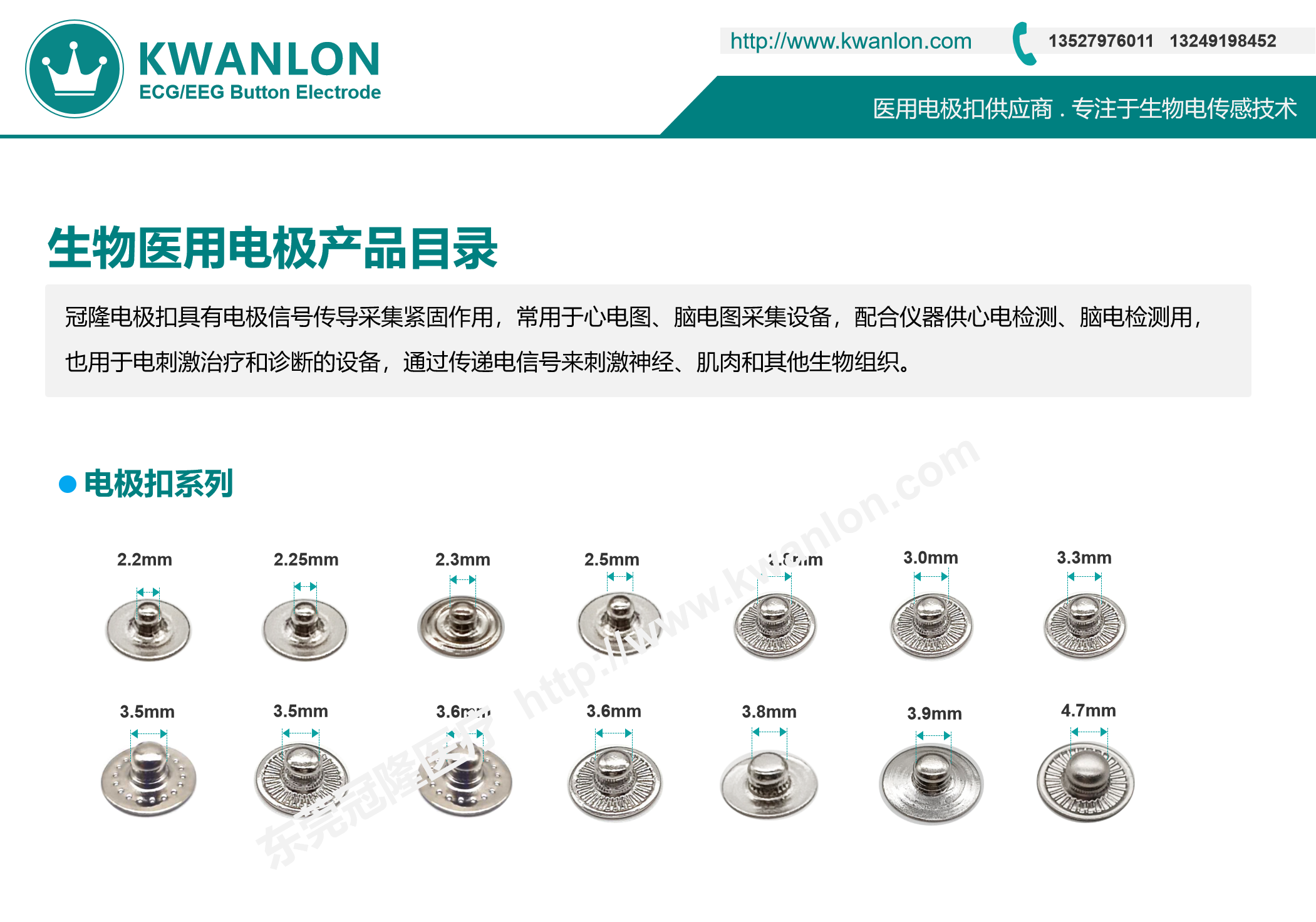 每一款電極扣母扣都有相對(duì)應(yīng)的公扣、底扣(ABS鍍氯化銀扣),規(guī)格尺寸從2.3至5.0,公扣規(guī)格2.2至4.7;每一款電極扣母扣都有相對(duì)應(yīng)的公扣、底扣(ABS鍍氯化銀扣),規(guī)格尺寸從2.3至5.0,公扣規(guī)格2.2至4.7。冠隆電極扣規(guī)格款式在國(guó)內(nèi)同類(lèi)廠家算是比較齊全的,歡迎各界前來(lái)咨詢(xún)!